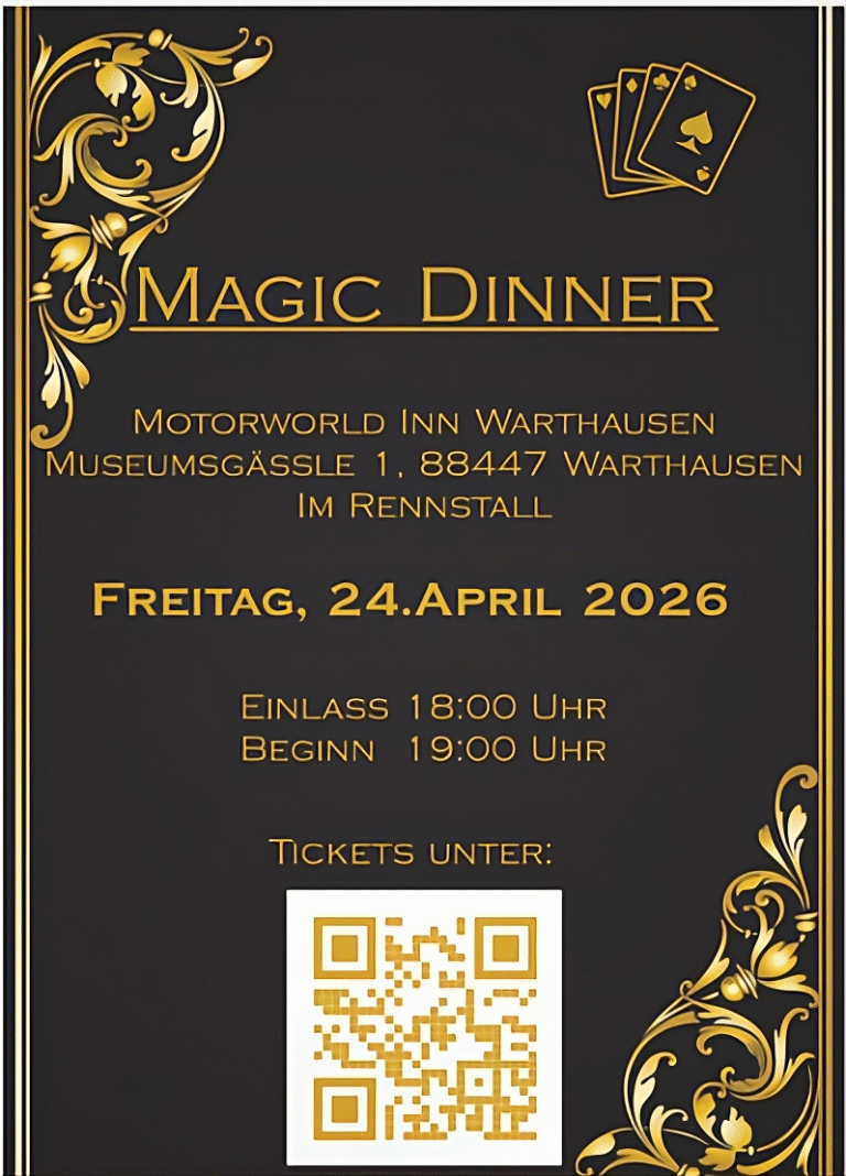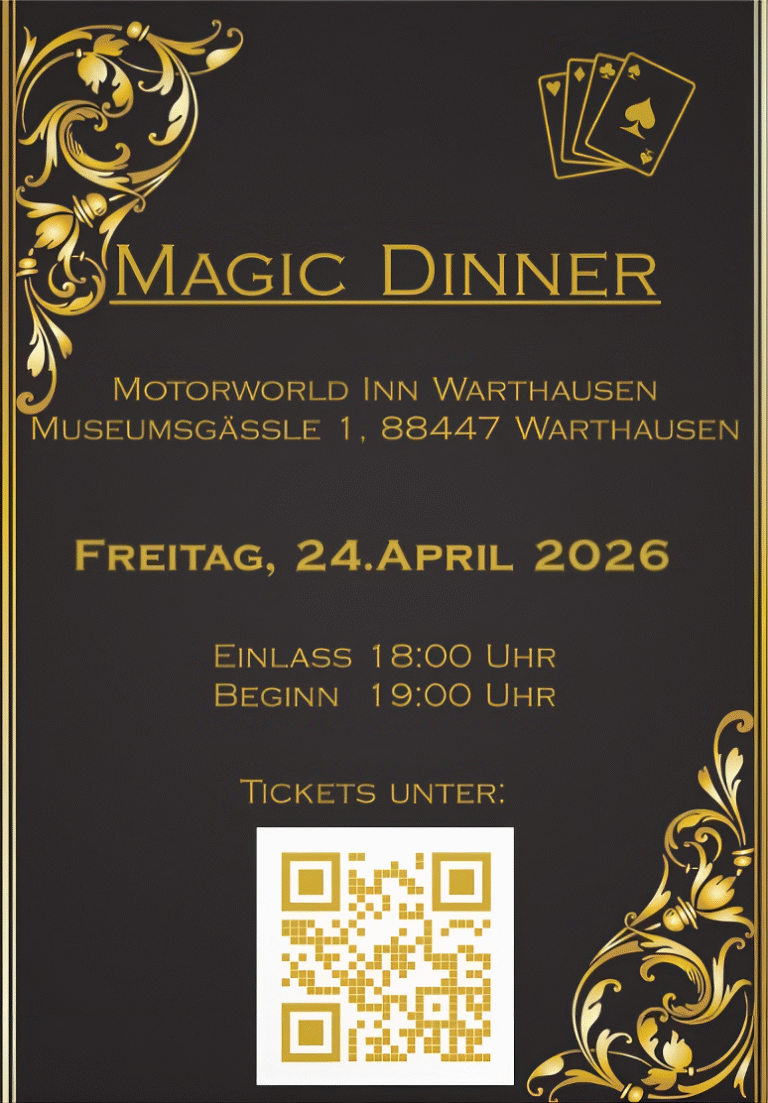 Info: Im Preis inbegriffen ist 3-Gänge-Menü + Zaubershows