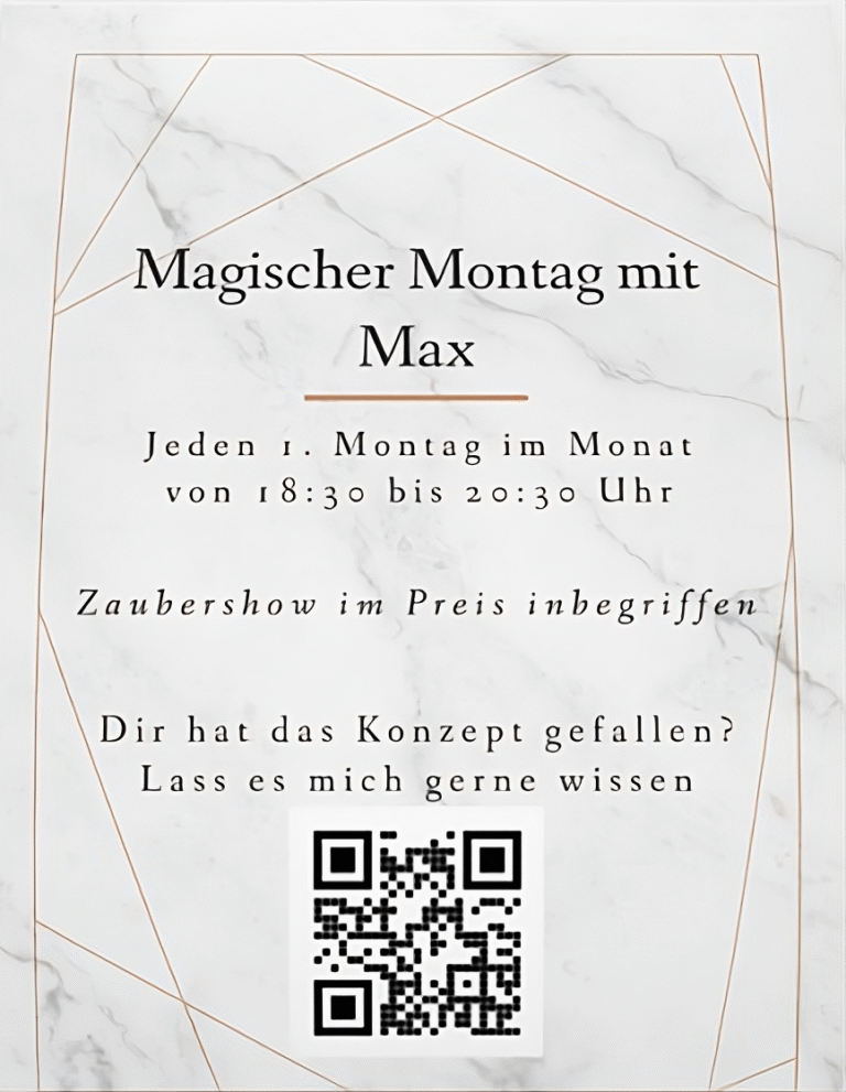 Erlebe eine unvergessliche Mischung aus kulinarischen Highlights und magischen Momenten in stilvollem Ambiente. Lass dich verzaubern – hautnah, humorvoll und voller Überraschungen! 🍽️💫